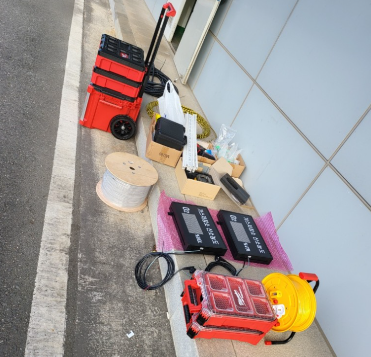 공사에 필요한 공구와 자재를 찾기 좋게 나열합니다.
