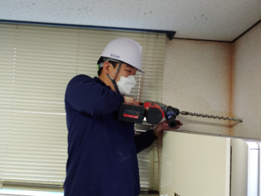구멍을 뚫고 제품을 달고 청소를 합니다.