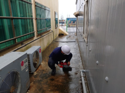 장착센서 NH3 O3 H2S CO 옵션 - 습환 환경에서 기기 부식을 방지하기 위한 함체 구성 - 설치 위치와 가스 발생 공간이 다른 점을 고려한 펌프 옵션 및 샘플링 라인 구성 - 외부 모니터링을 위한 전광판과 경광등 작업인원 4인 설치 내용 -측정기(현장)와 모니터링장소(사무실)이 독립된 건물로 타설에 어려움과 약간의 고소 작업 있음 -현장의 설치 위치부터 가스 측정 포인트가 다름 펌프와 샘플링 라인을 연결