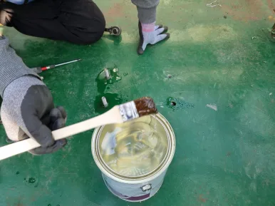 3.타공작업으로 인해 들뜰수 있는 방수페인트 주위를 재 방수 처리 합니다.