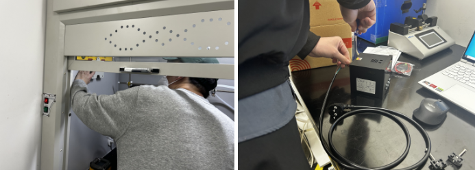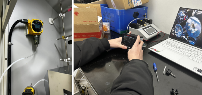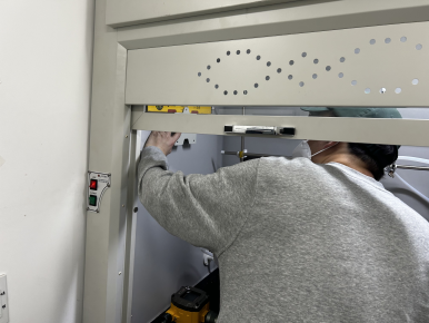 연구실 연구후드 내 FIX800 가스측정기 설치를 위해 위치를 잡고