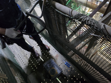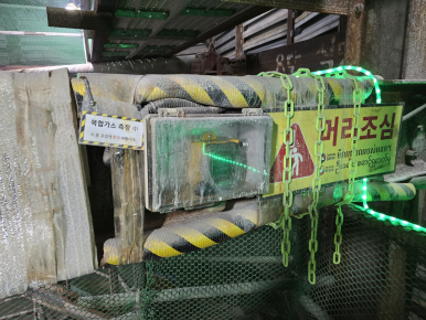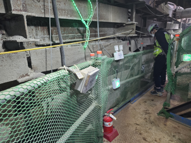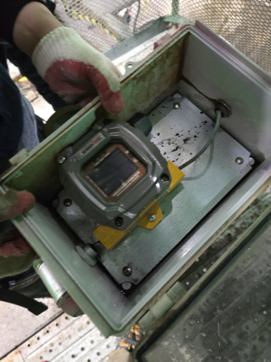 두번째 현장은 112 환기구입니다. 전원을 내린 후 제품을 분리해보니 사진과 처럼 함체내에 물과 이물이 조금 고여있습니다. 안전용 보양 스트리폼 등 때문에 빔 안에 고인 물이 제품으로 침투한 것 같습니다. H 빔의 면쪽이 아닌 H 빔 안쪽에 설치된 것과 안전용 보양테이프 작업이 추가된 것 때문에 위에서 내려오는 물이 원활하게 빠지지 않았던 것 같습니다. 내부를 청소하고 전원을 넣었더니 다행히 정상 작동합니다. 현장에 설치하는 경우 비를 피하는 것도 좋지만 물이 고이지 않는 곳에 설치를 하시길 바랍니다. (최초설치 이후 자체적인 이전이 있었던 것 같습니다) 113 정거장과 마찬가지로 수평구 초입에 제품을 설치하고 정상작동 확인까지 마무리 하였습니다.
