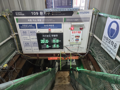 작업 시작 전 기준으로 여전히 정상적으로 가스가 측정되고 있습니다. 해당 정거장 설치 했을 때가 분명히 기억과 사진에 남아있는데 벌써 이렇게 깊게 들어가 있습니다. 한가지 변수는 철골 구조물에 자석으로 고정하려 했는데, 작업 차량과 작업자 이동등의 이유로 별 수 없이 양생되어있는 콘크리트 벽에다 고정하기로 하였습니다. 역시 현장은 변수 투성이 입니다. 가벼운 마음으로 내려갔으나 이거, 별도의 공구를 들고 내려와야겠네요.