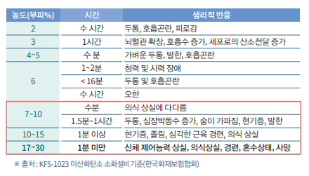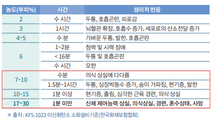 ■ 인체에 미치는 영향 (농도에 따른 생리적 현상)