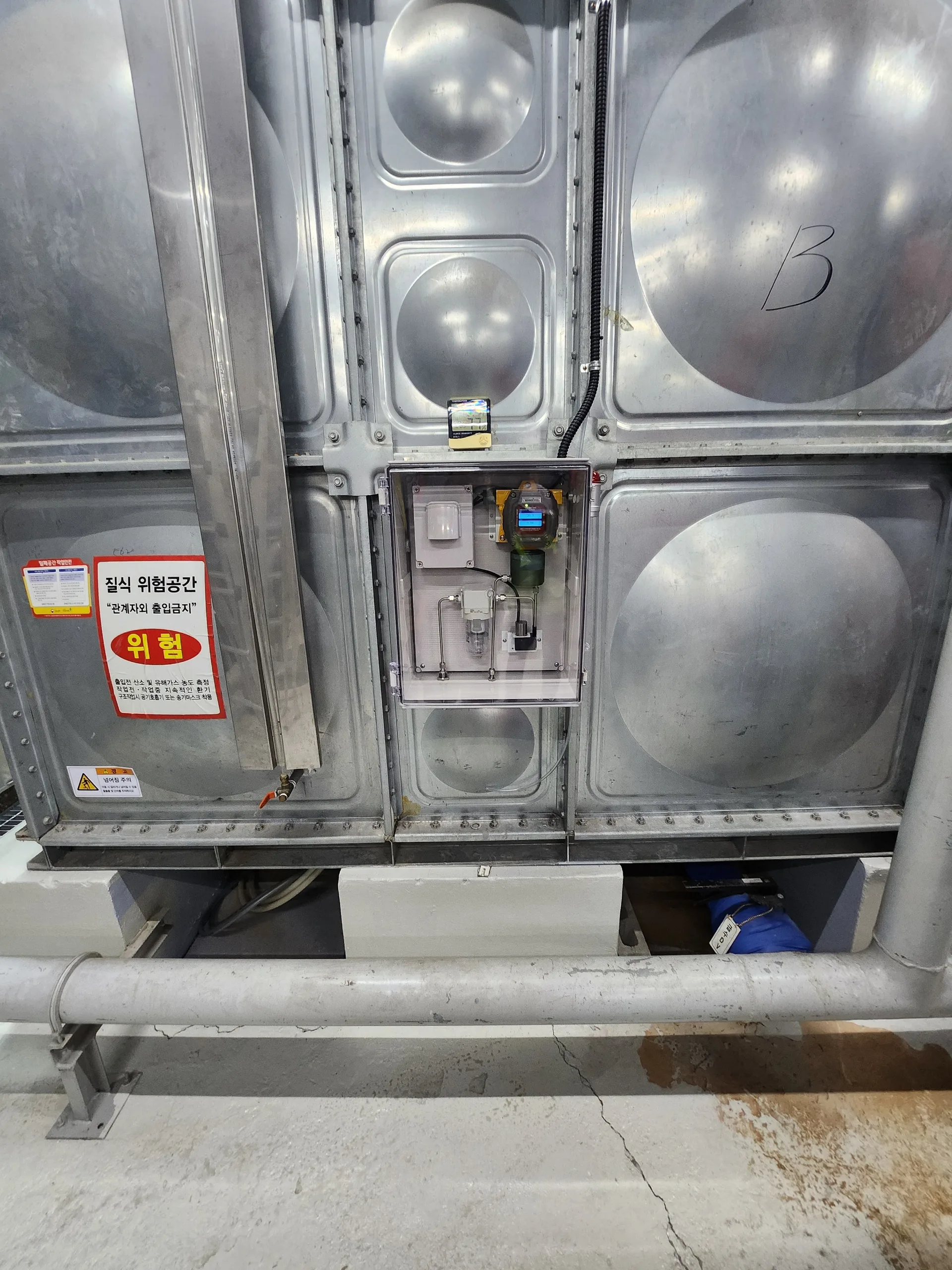 이번 설치 현장은 물탱크/정화탱크 내부 O2 CO2를 측정하고 현황판으로 모니터링을 희망하셨습니다.