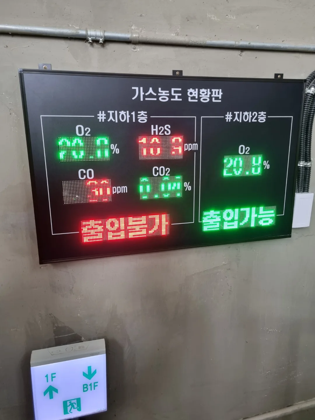 (지하 1층과 2층의 측정기가 한대의 전광판에 표시)