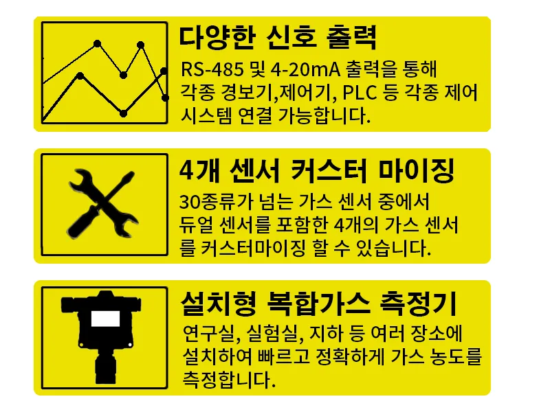 뿐만 아니라 듀얼 센서를 포함한 4개의 가스 센서를 장착 및 커스터 마이징 하여 최대 5가지의 가스를 동시