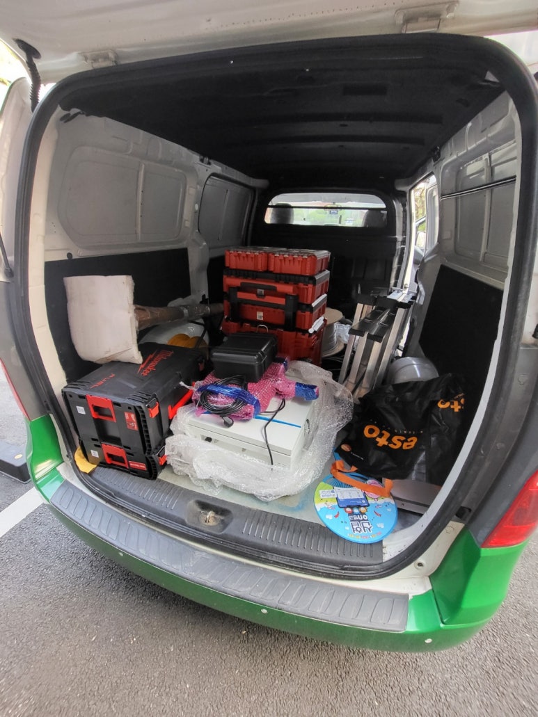 Today, our business vehicles are ready for work. The spacious storage space allows a 180cm free-standing pole to be positioned without difficulty. However, this post is not about bragging about the car, so I’ll skip it.