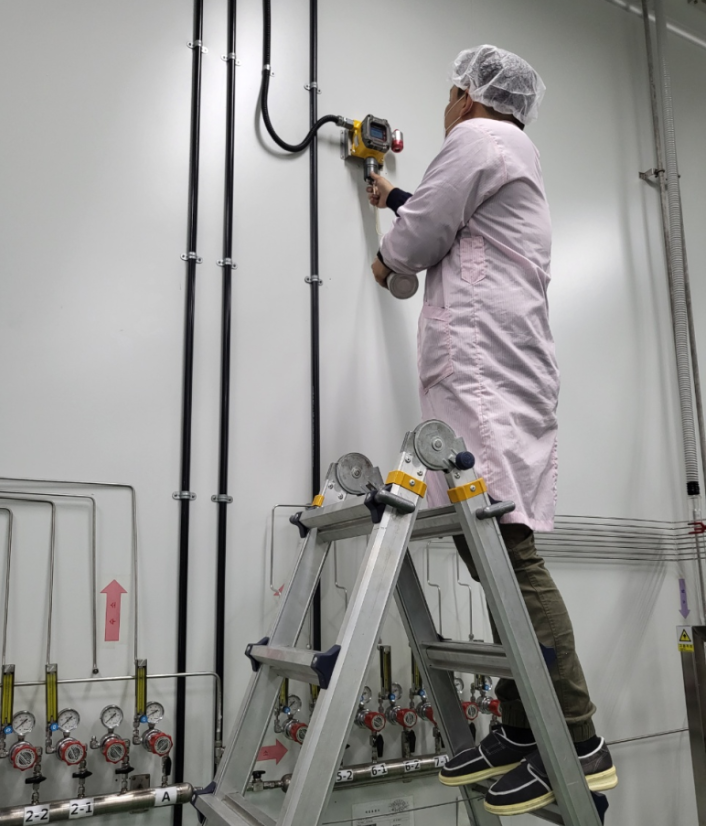 An electronic display board with warning lights was installed in the office space outside the lab. The measuring instrument FIX800 and communication + power lines are connected by wire. The 220V power supply to the electronic display board is well hidden with a thin, white duct. Some of you may have discovered that the power cord was pulled down after reading this article. Inside the site, the process was in progress and XX ppm was coming out. Although it is not at a dangerous level, it is mosaiced to protect information.
