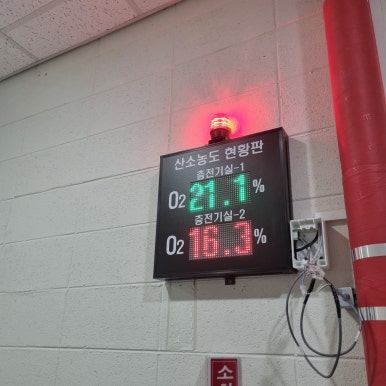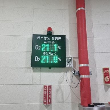 The product installed at this site is a single installation type gas meter, FIX800. ※ Please access the following URL to check the list of gases that can be installed on FIX800. https://www.rs-korea.com/shop/goods_view.php?gno=326&mtype=all&cate1=83&cate2=95■ Outside the installation, an electronic display board was installed so that workers can preview the oxygen concentration inside the electric room.