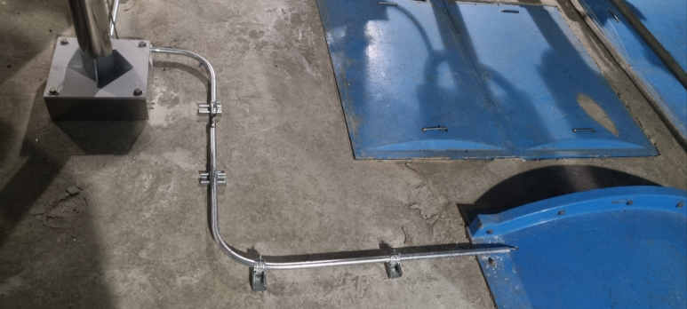 To prevent the thin suspension pipe from being distorted if the worker steps on it by mistake, double work was done using a channel or thicker steel pipe.