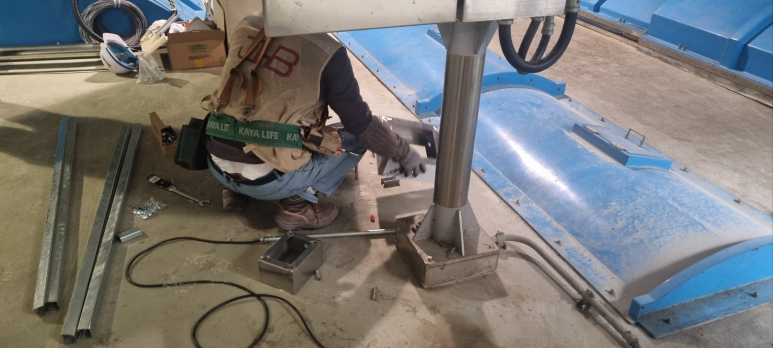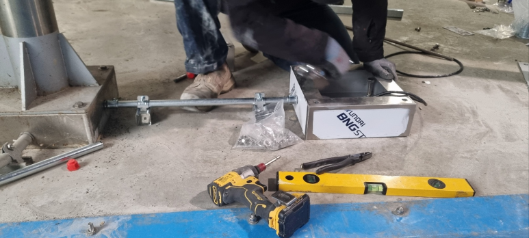 Now that the enclosure is erected, connect the SUS pipe to measure the oxygen concentration inside the wastewater storage tank.