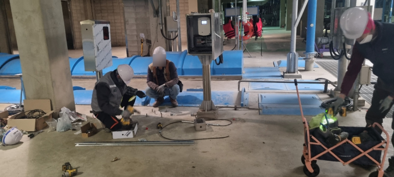 FIX 800 introduction blog https://www.rs-korea.com/shop/goods_view.php?gno=326&mtype=all&cate1=83&cate2=95■ At the start of installation, anchor work was done to fix the pipe where the preprocessor will be installed. The SUS box foundation was connected to the power supply from the automatic control device next to the fixing of the fixed pipe case, and the SUS pipe was connected to the inside of the storage tank.